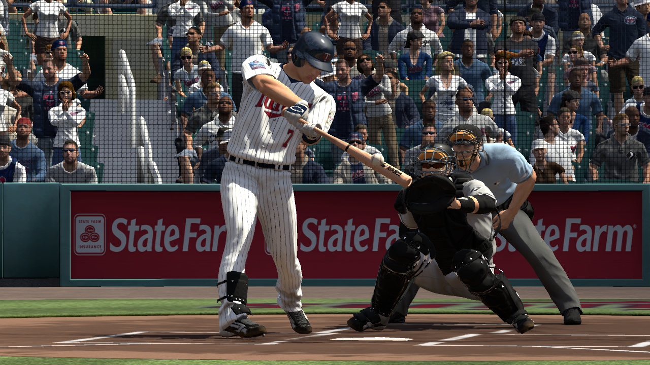 JK: Night time player lighting has a richer, more realistic feel to it, now that we are accounting for the self shadowing effects cast by the stadium bank lights. Day games will immediately look different, and you will feel the difference between 1pm and 3pm, both in the light energy, and the stadium cast shadows. Clouds now cast faint shadows on the world, which brings yet another realistic soft touch to the feeling of the visuals. Reflection and energy maps convey current time conditions, and are localized, so you can watch the reflection change in a baserunner’s helmet as he rounds the bases. Additionally, players populate dugouts and bullpens in real time and we’ve added stadium specific touches with scoreboards, jumbotrons, real-time clocks, splashcams, etc. We’ve also included crowd animation updates like stadium-specific behaviors such as animated objects, fireworks, splash counts, TB cowbell, and improved play-off atmosphere with additions such as noisemakers and rally towels.
